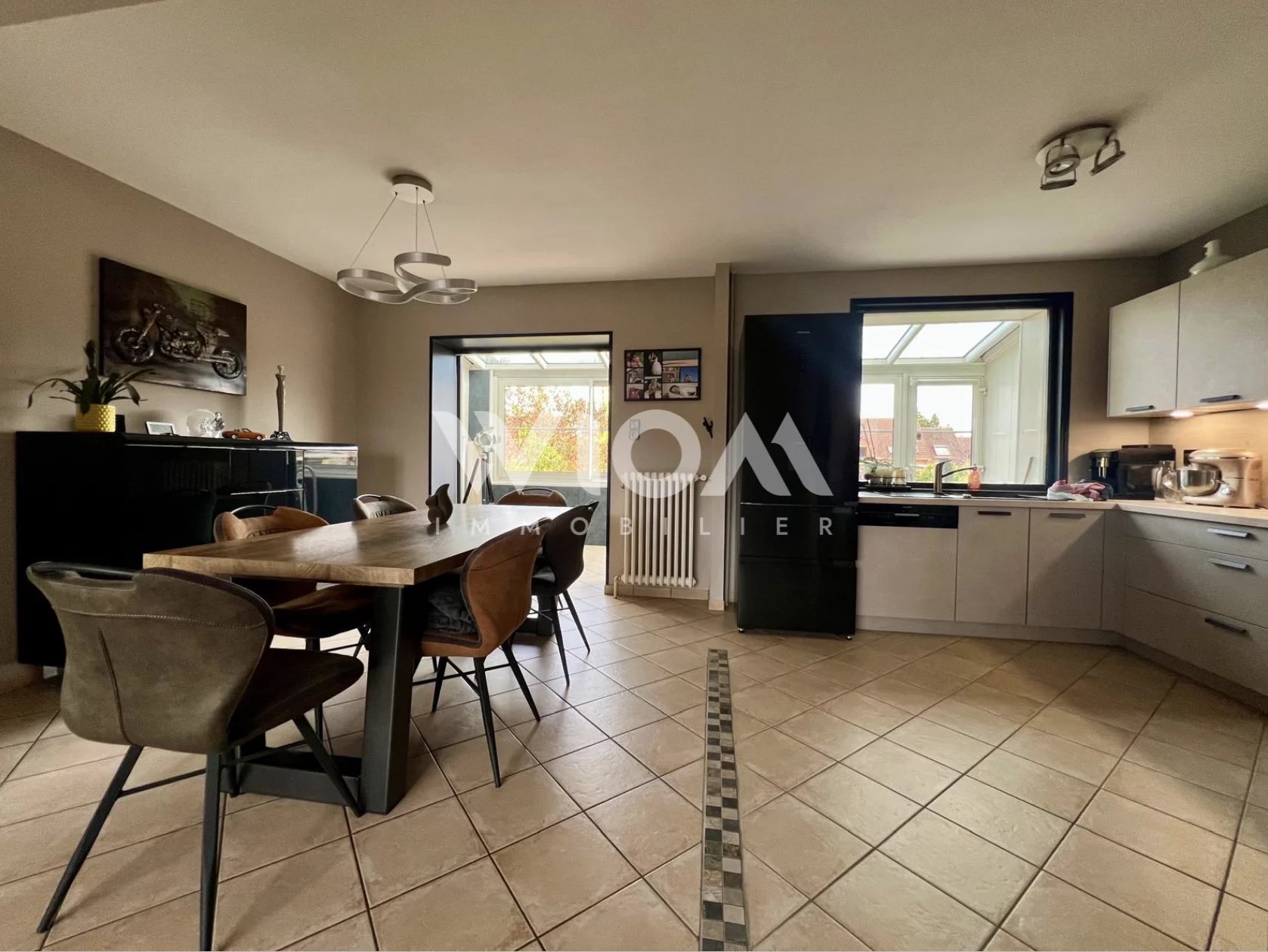 ✨ Une pièce de vie de 39 m² comprenant une cuisine Ixina équipée neuve (2025), prolongé par une véranda baignée de lumière.
