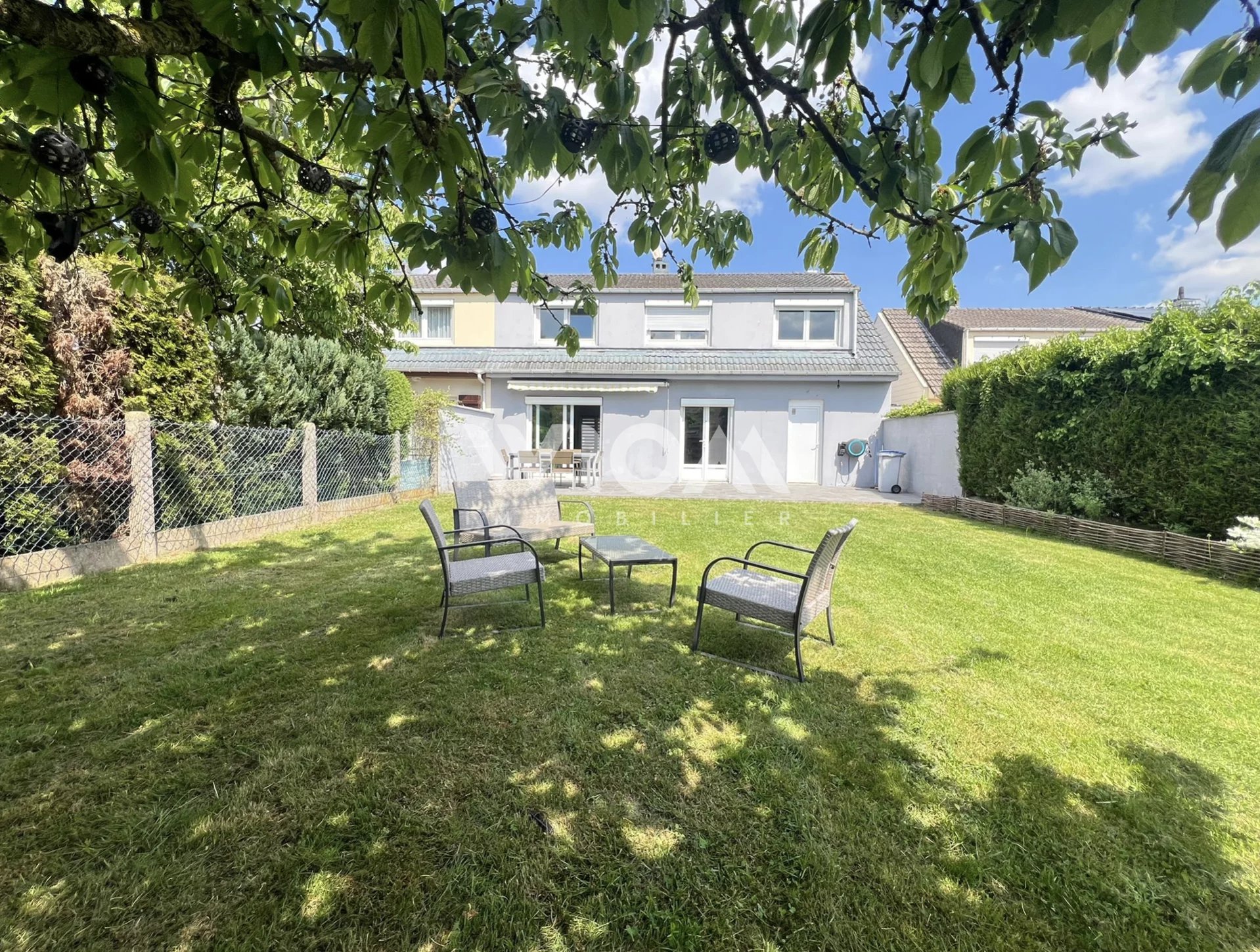 • Un vaste jardin clos, parfaitement entretenu, équipé d’un robot tondeuse, avec une grande terrasse carrelée entourant la maison : l’espace idéal pour vos soirées d’été.