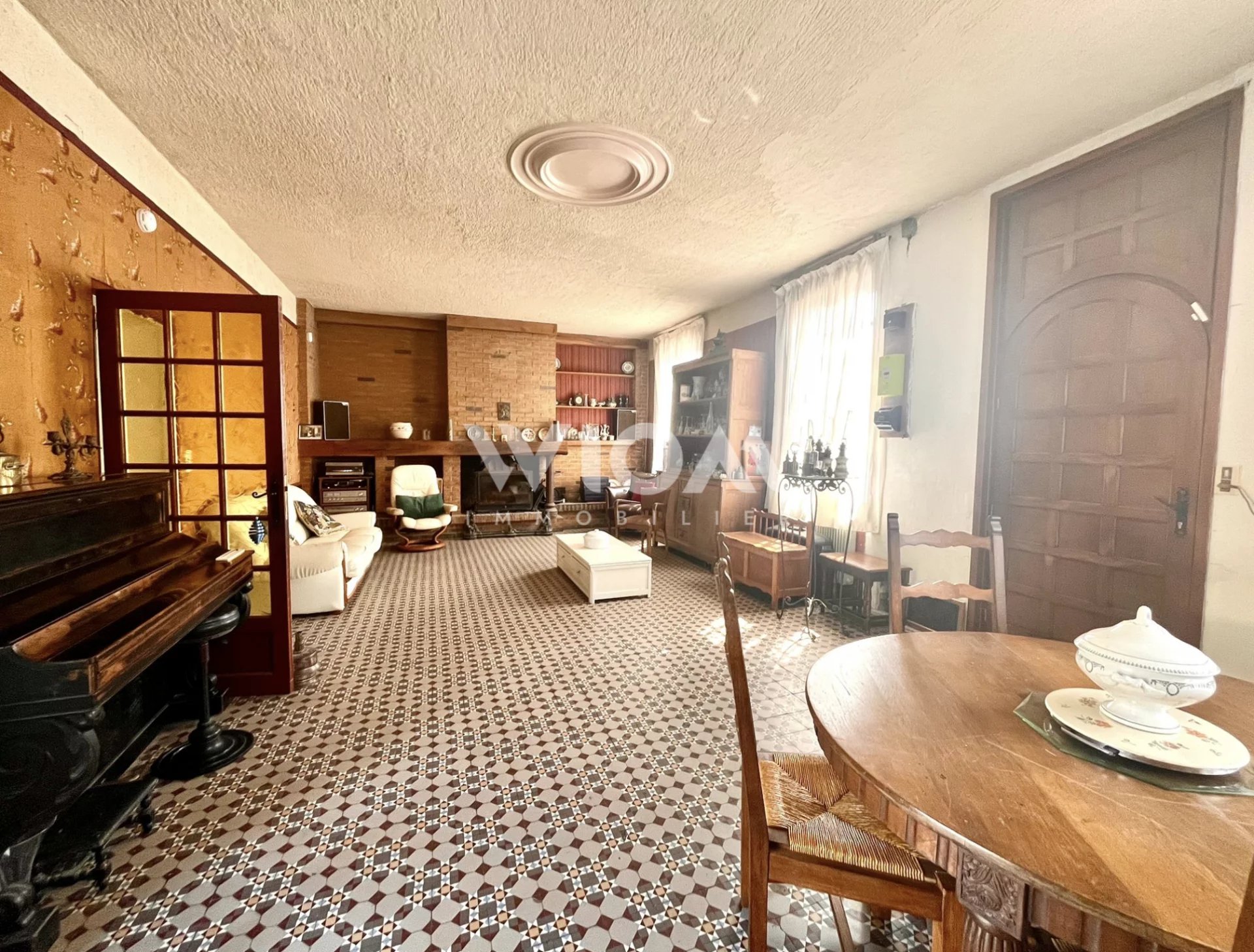 Séjour lumineux (carrelage d’époque. cheminée. poutres apparentes)