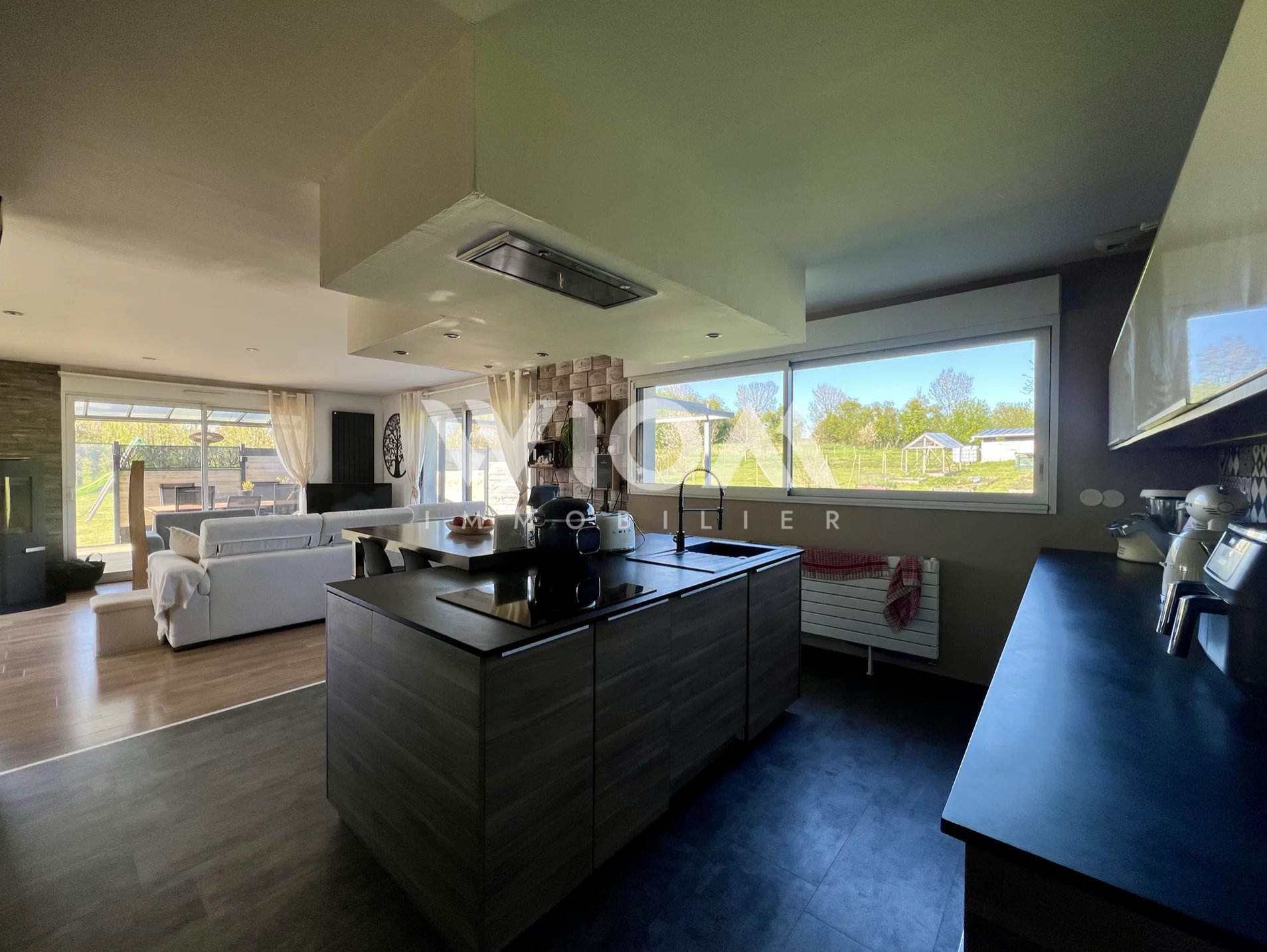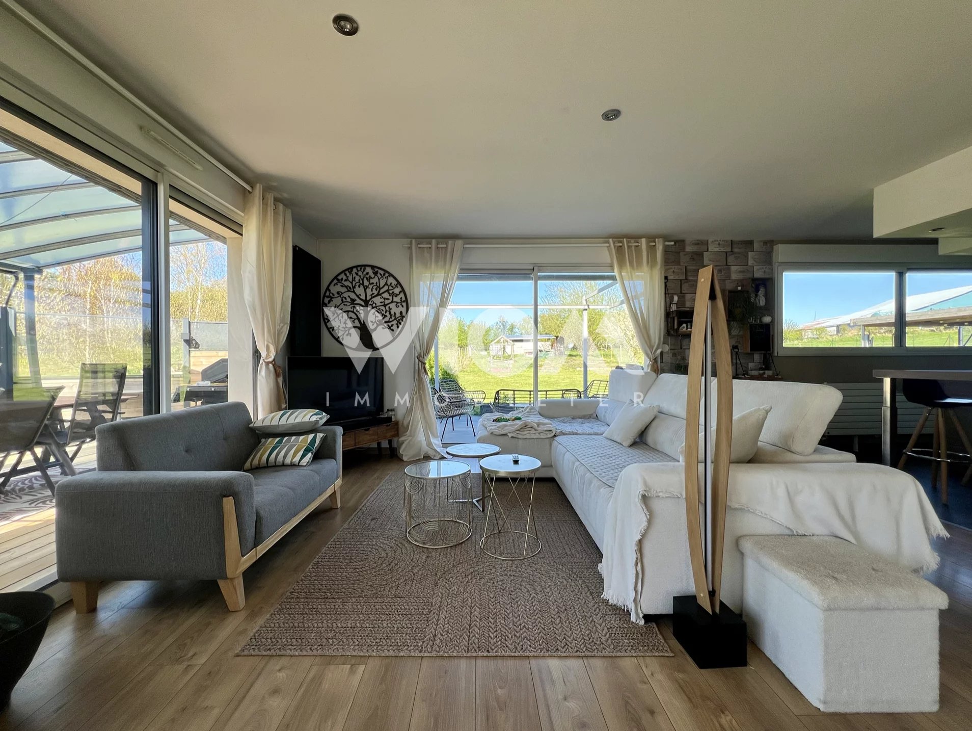 - Séjour / cuisine spacieux et lumineux de 59 m², véritable cœur de la maison, ouvert sur l’extérieur