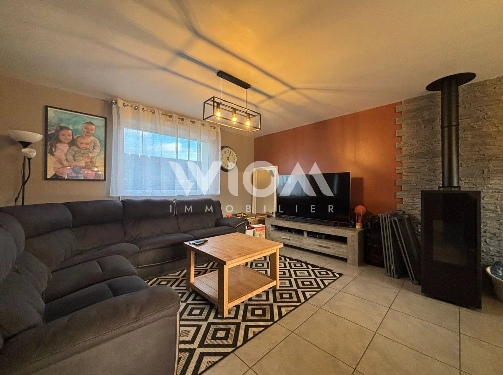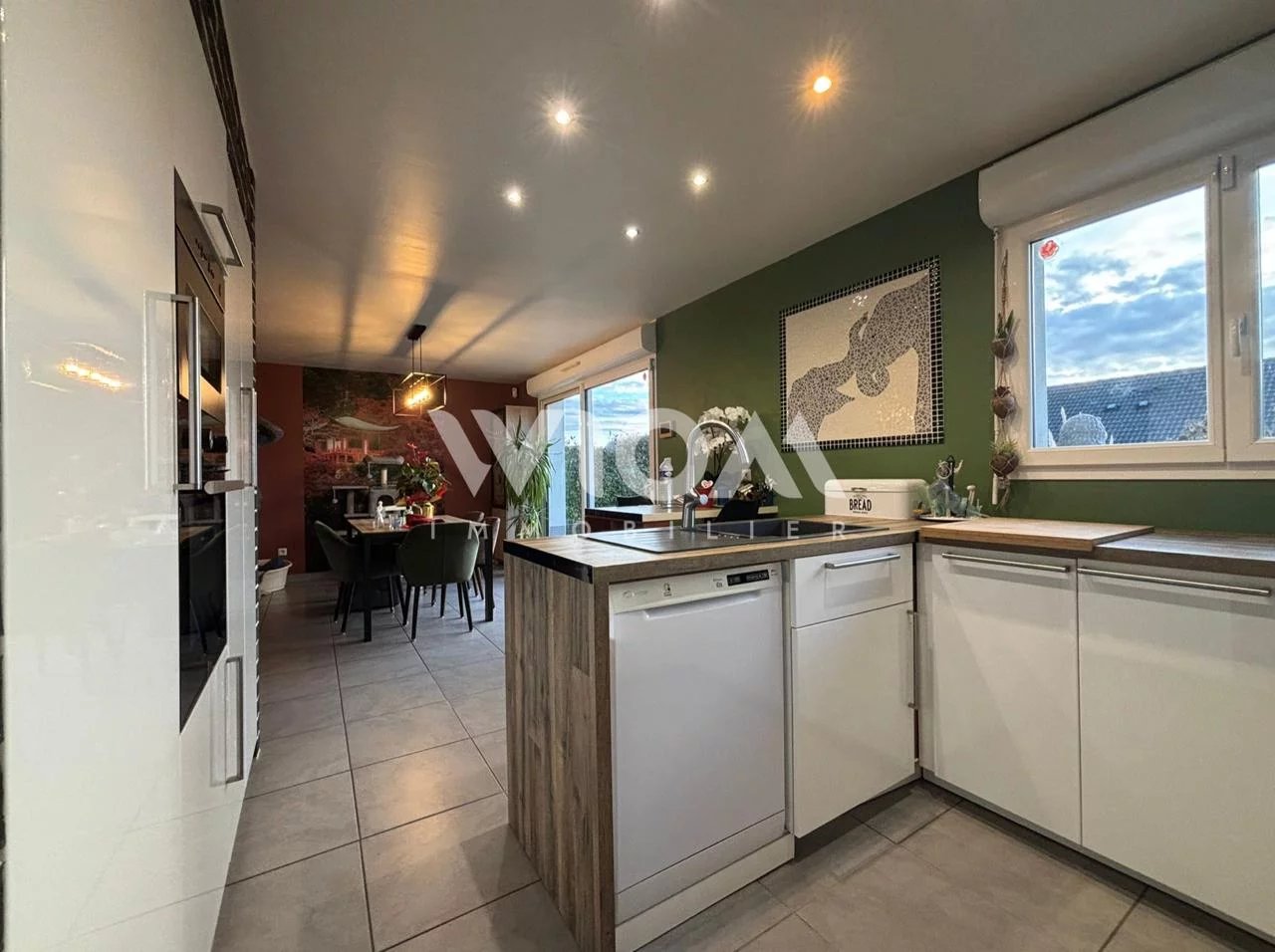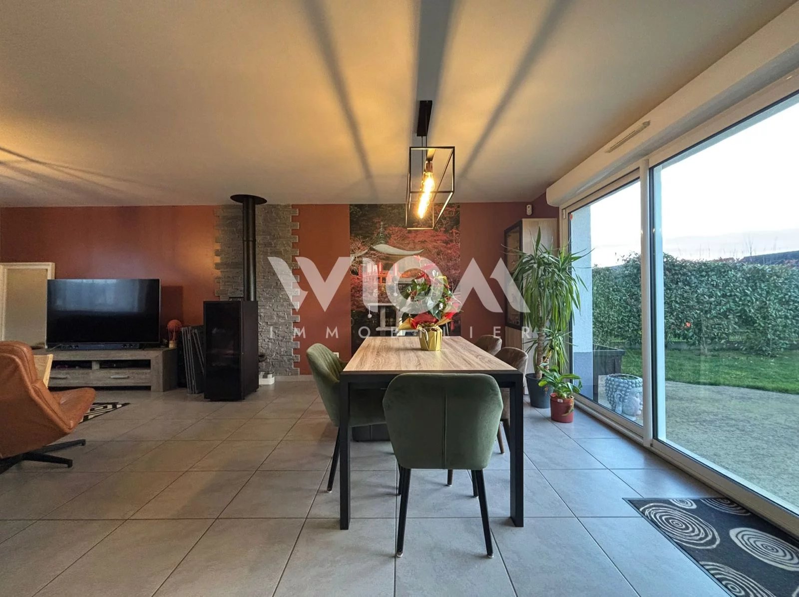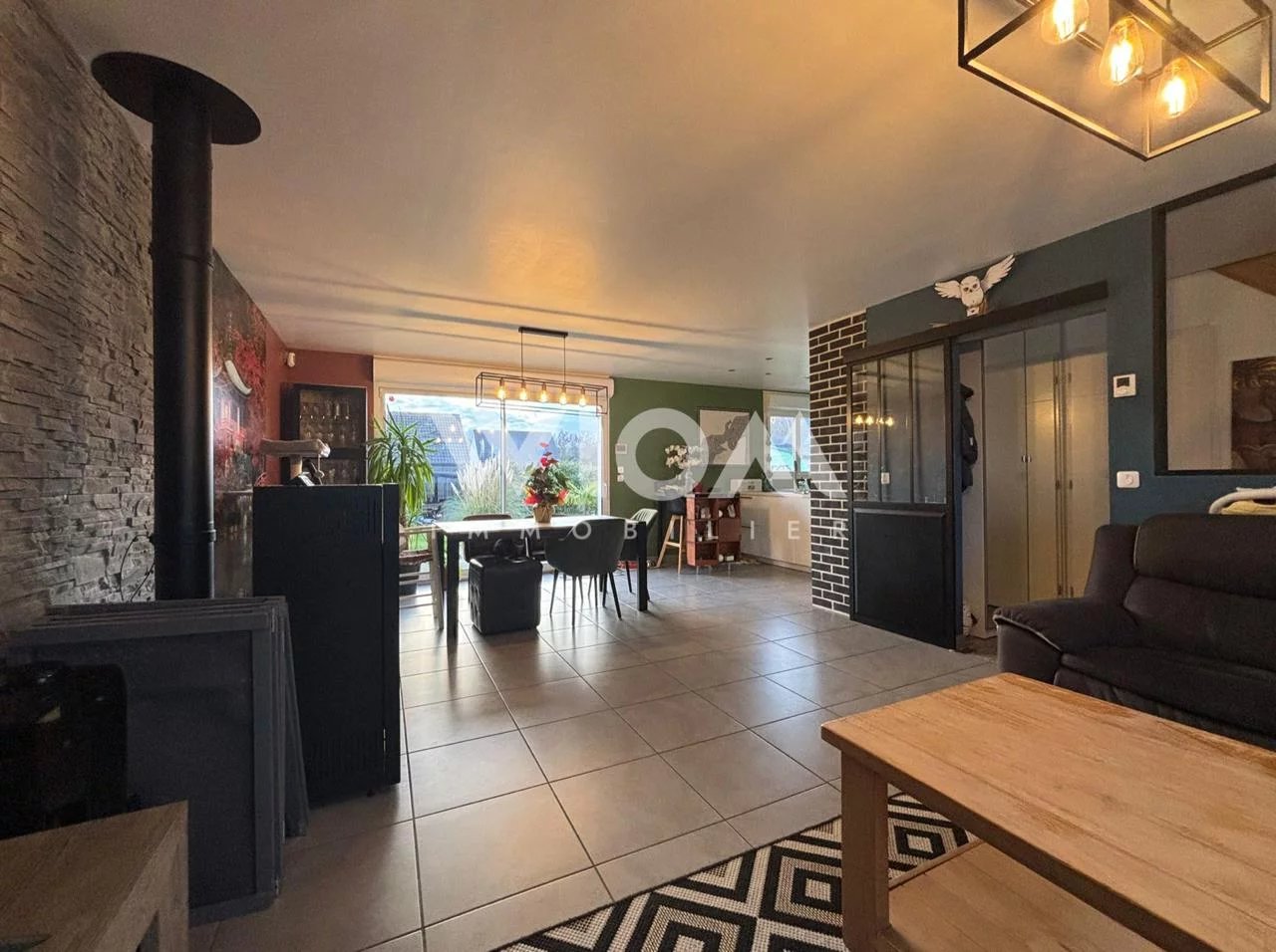 Dès l’entrée, vous serez séduit par une belle pièce de vie lumineuse, composée d’un salon et d’une salle à manger ouverts sur la cuisine, créant un espace convivial et chaleureux pour le quotidien comme pour recevoir.