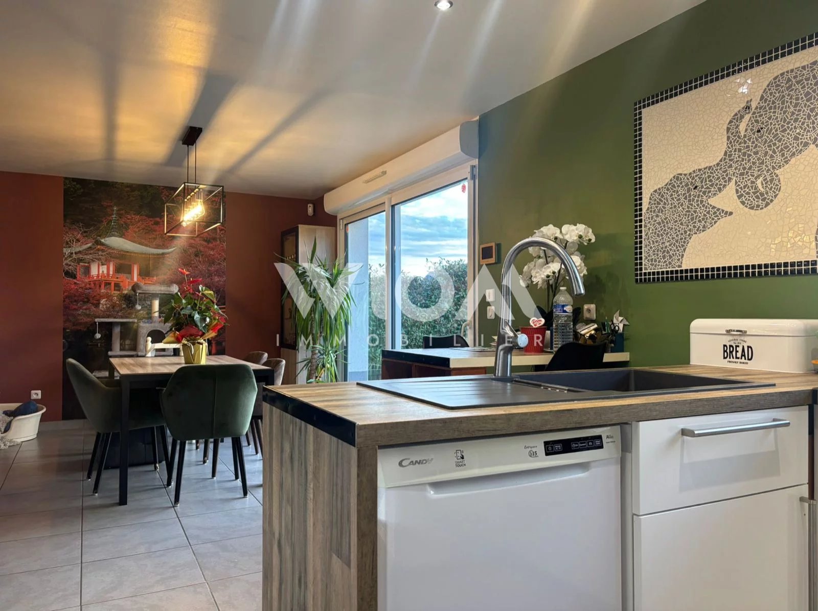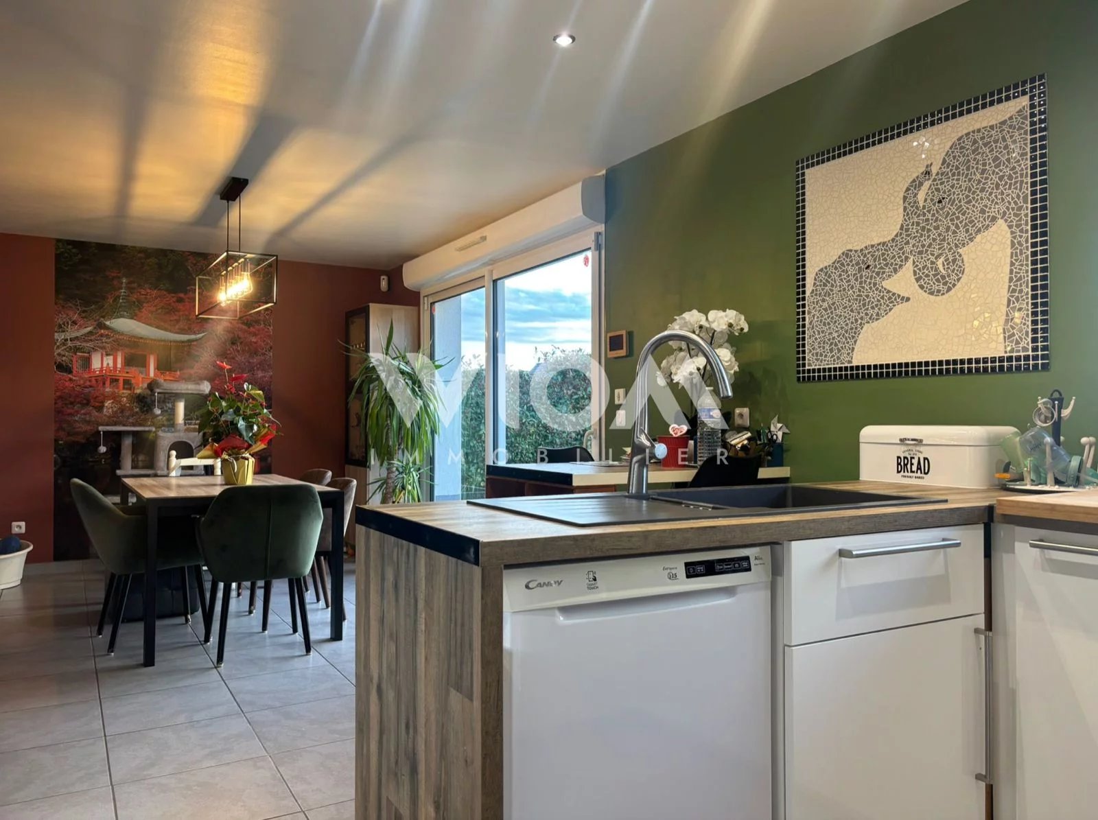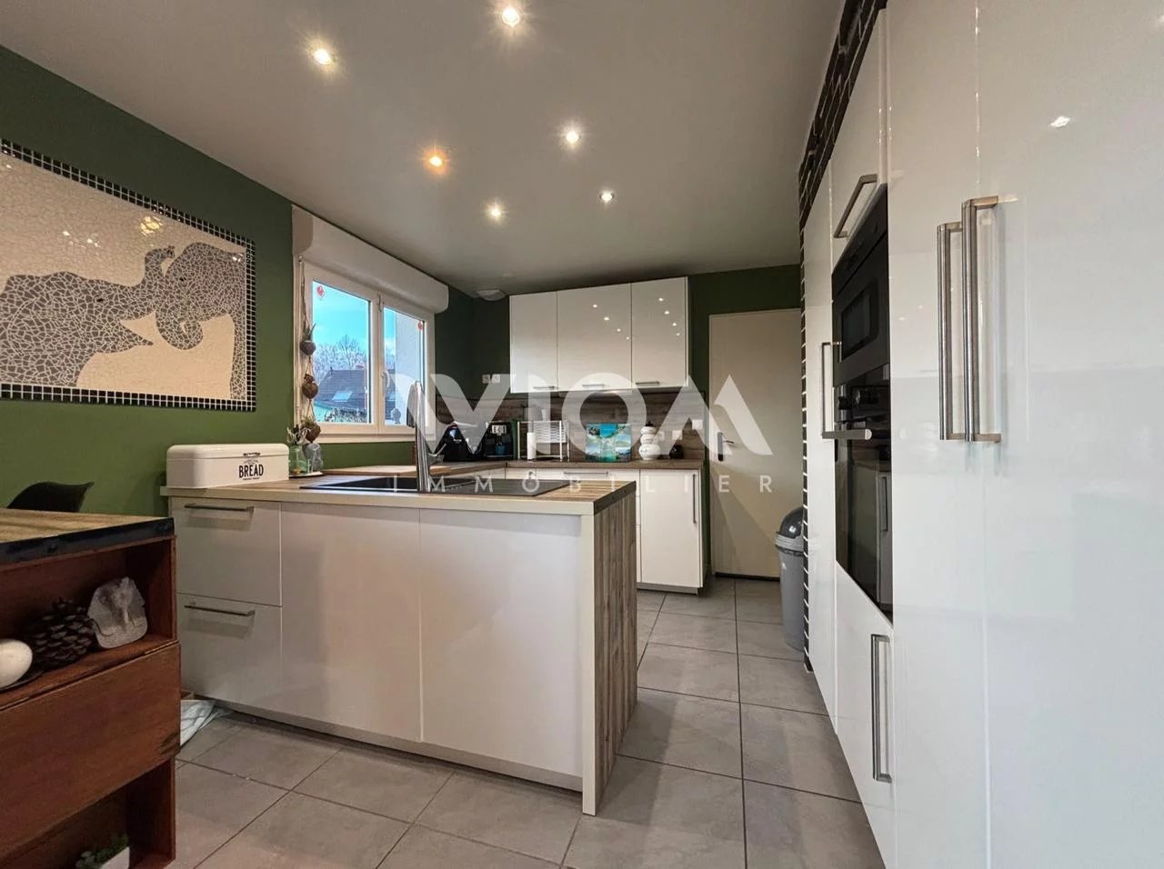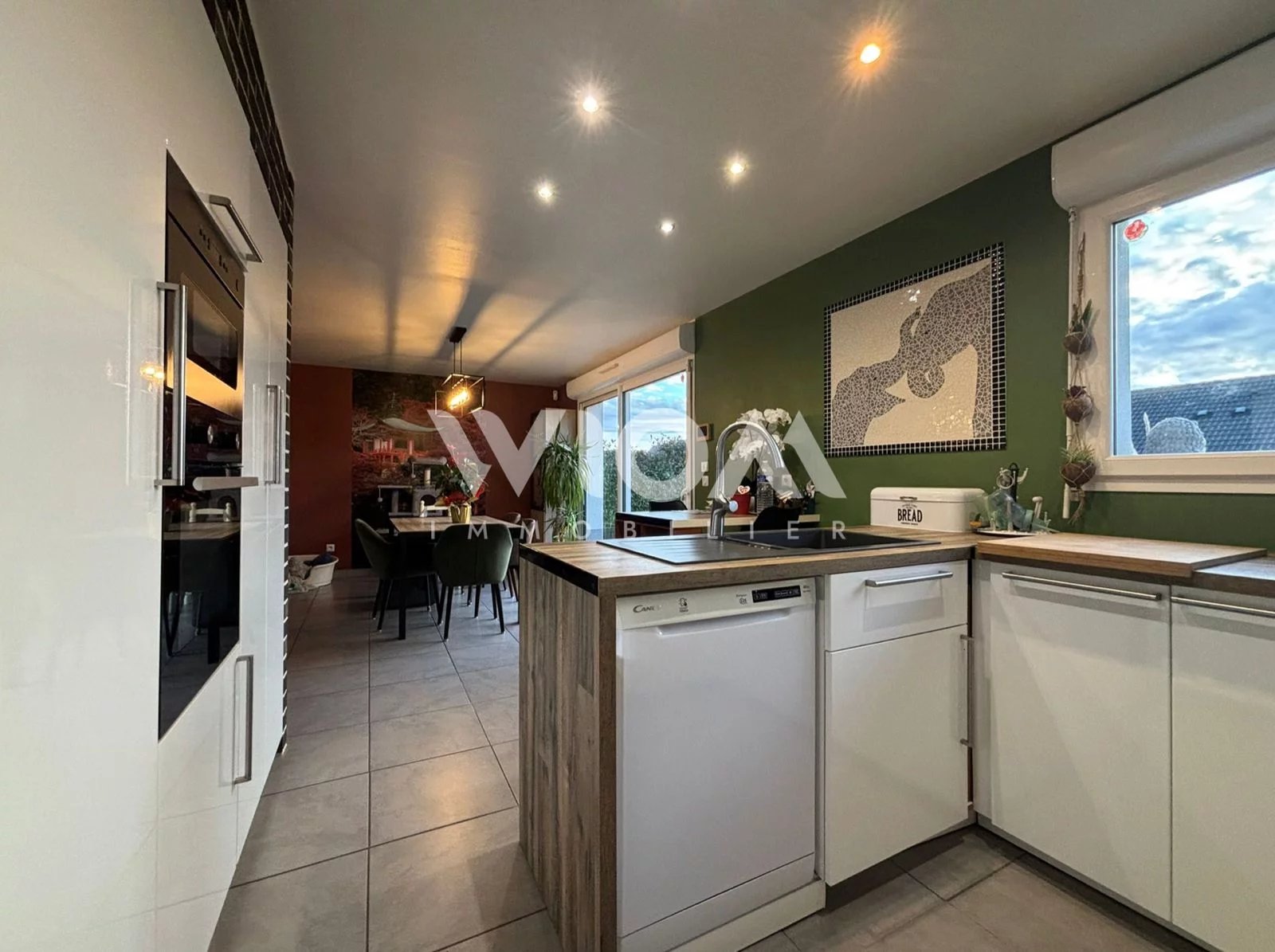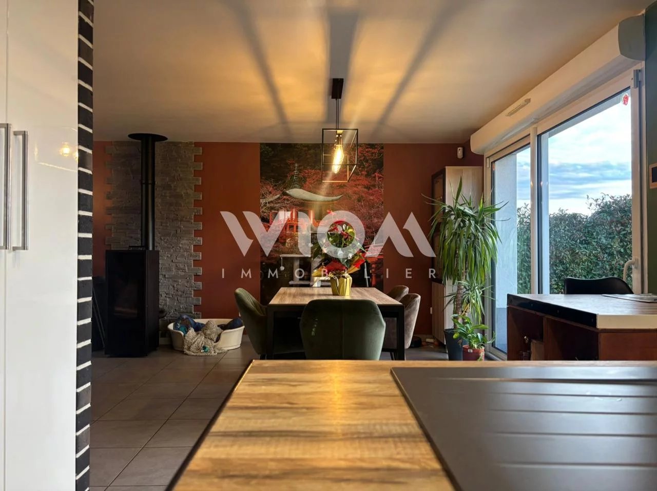 Dès l’entrée, vous serez séduit par une belle pièce de vie lumineuse, composée d’un salon et d’une salle à manger ouverts sur la cuisine, créant un espace convivial et chaleureux pour le quotidien comme pour recevoir.