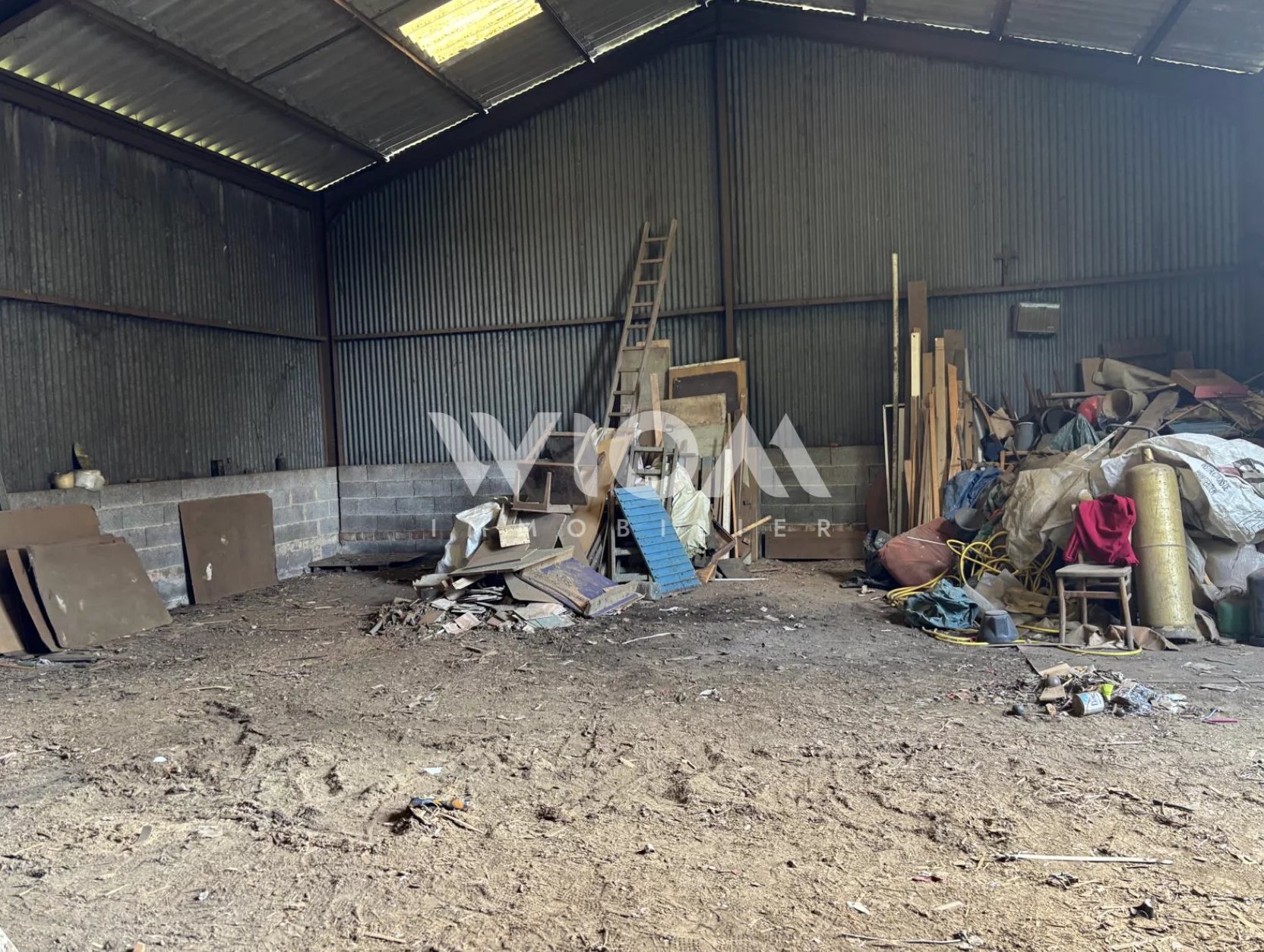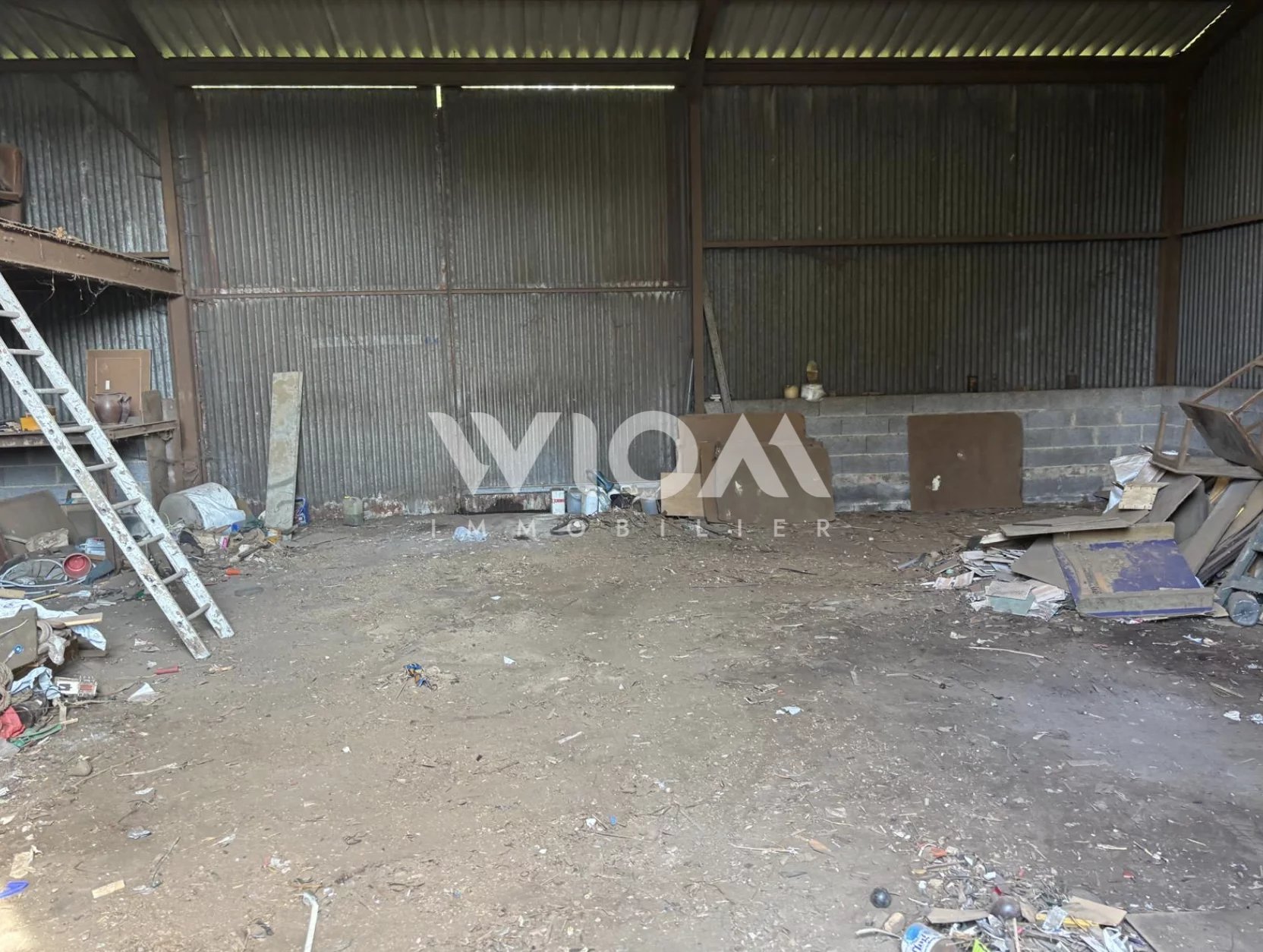 Hangar de 150 m². non attenant mais situé à proximité immédiate sur le même terrain — idéal pour du stockage. une activité artisanale ou un aménagement secondaire